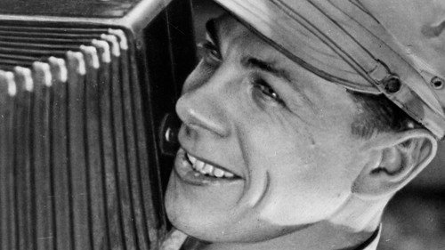 Igor Savchenko's Accordion (Garmon', 1934) was adapted from a poem by A. Zharov. This film sheds light on the reasons why the mass song came into being. In it, the country boy Timosha stops playing the accordion after being chosen leader of the local Komsomol. When he understands that he must compete with the sad kulak songs played by Tlskliby ("Mournful"), he recognizes his mistake in abandoning his accordion, and in the end he gathers the other youths around him with his lively and merry songs.